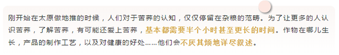 从一个名不见经传的小杂粮,发展成为山西农产品中一个“异军突起”的品牌,张瑾丽坦言,很多人并不看好的一个小门类产品,发展结果却“出乎意料”。